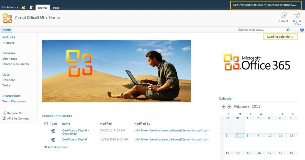 E para finalizar aqui está o print que foi tão esperado no momento do webcast e não foi possível mostrar, logada no SharePoint Online usando meu usuário do hotmail:
