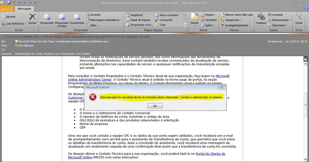 1. E quando um html do banco que vc está acostumado a anos abrir a partir de uma mensagem no outlook, de repente não abre mais ? (noutro computador abre)