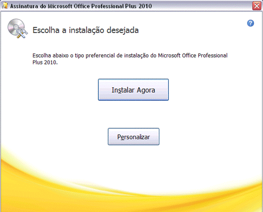 Após o download a instalação é feita normalmente, podendo escolher instalação completa ou customizar e não instalar todos os programas da suite Office. Influência dessa decisão é a duração do processo de instalação. (Figura 7)