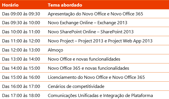 • 10:00 as 10:40 – Explorando o Office Professional Plus e o Office Web Apps