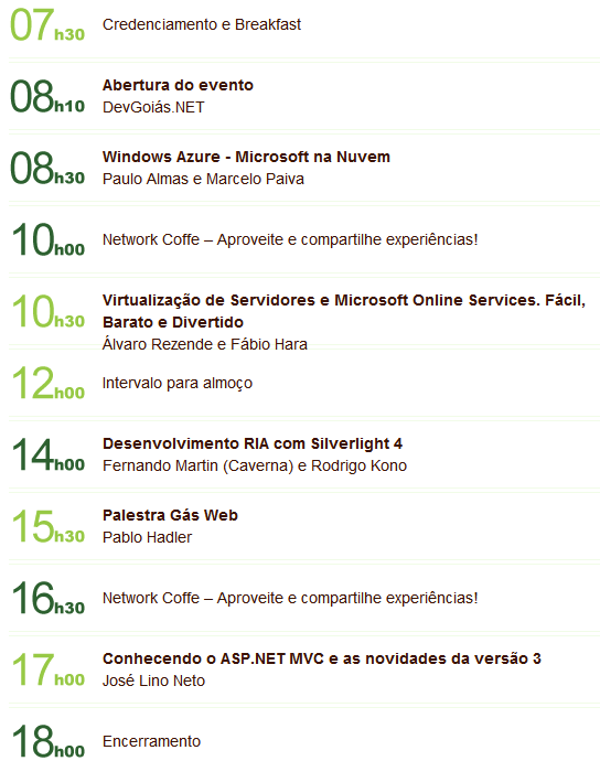Como podem ver, um evento recheado de Cloud, TFS e Windows Phone. Acho que você não vai querer perder né? Faça sua inscrição, clique aqui!