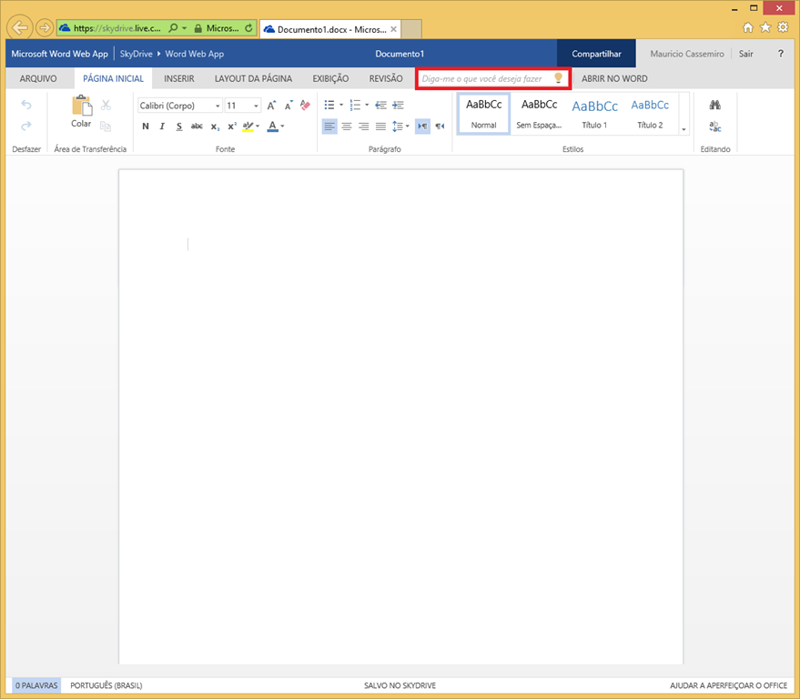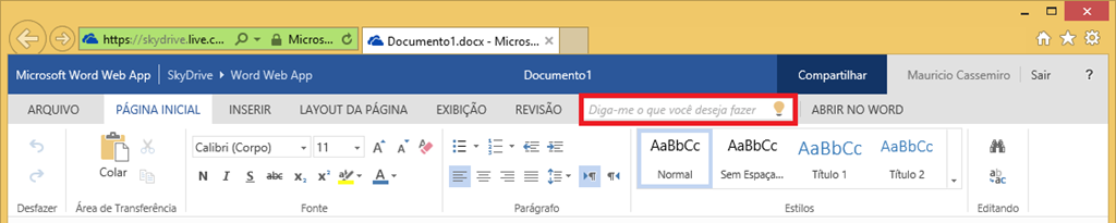 Quando você está procurando uma ferramenta do Word e não lembra, exatamente, o nome dela ou em que guia e/ou grupo de opções ela se localiza dentro da Faixa de Opções do Office (Ribbon), só consegue se lembrar o que a ferramenta faz; poderá usar este novo recurso do Microsoft Word Web App 2014.